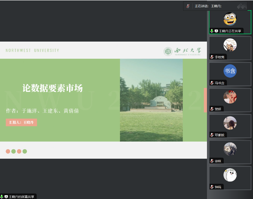 徐咪博士对其汇报内容进行了点评。她表示这本书是对我国数据要素市场建设相关内容的阶段性总结,也是对其相关概念较为系统、较为全面的阐释。另外,数据要素、数字经济等相关内容在近年来的讨论比较火热,也与近期两会中的“新质生产力”密切相关,对行政管理专业的相关研究具有十分重要的参考意义,最后,她建议同学们要善于将数据意识与自己的研究方向相结合。