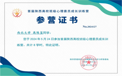 我院2022人力资源管理专业班级心理委员高陈玺代表学校参与了陕西高校班级心理委员成长训练营,在此过程中分别参与了“和而不同 心音共鸣—鼓圈团体”“共情力提升工作坊——情愿卡体验”培训并获得培训证书,受益匪浅。