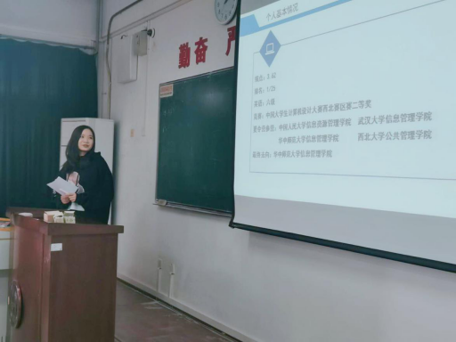 第一位分享的是来自档案学专业的张佳琪(保研学校为华中师范大学信息管理学院),她的演讲题目是《保研准备与流程》。她向我们强调了专业成绩的重要性,同时也强调了英语、竞赛、科研论文等方面的问题。张佳琪同学还介绍了推免的详细流程,推荐了获得夏令营、推免信息的有关公众号,如后保研、易保研等,还有夏令营面试时需要准备的有关材料、材料投递的注意事项。张佳琪同学最后进行了总结:成绩很重要、保持平常心、坚持到底、不止有一条路。
