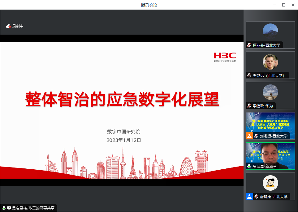 我院周文光主任主持本次会议第三阶段。西大应急团队分享全国十个智慧应急试点省市推进情况。